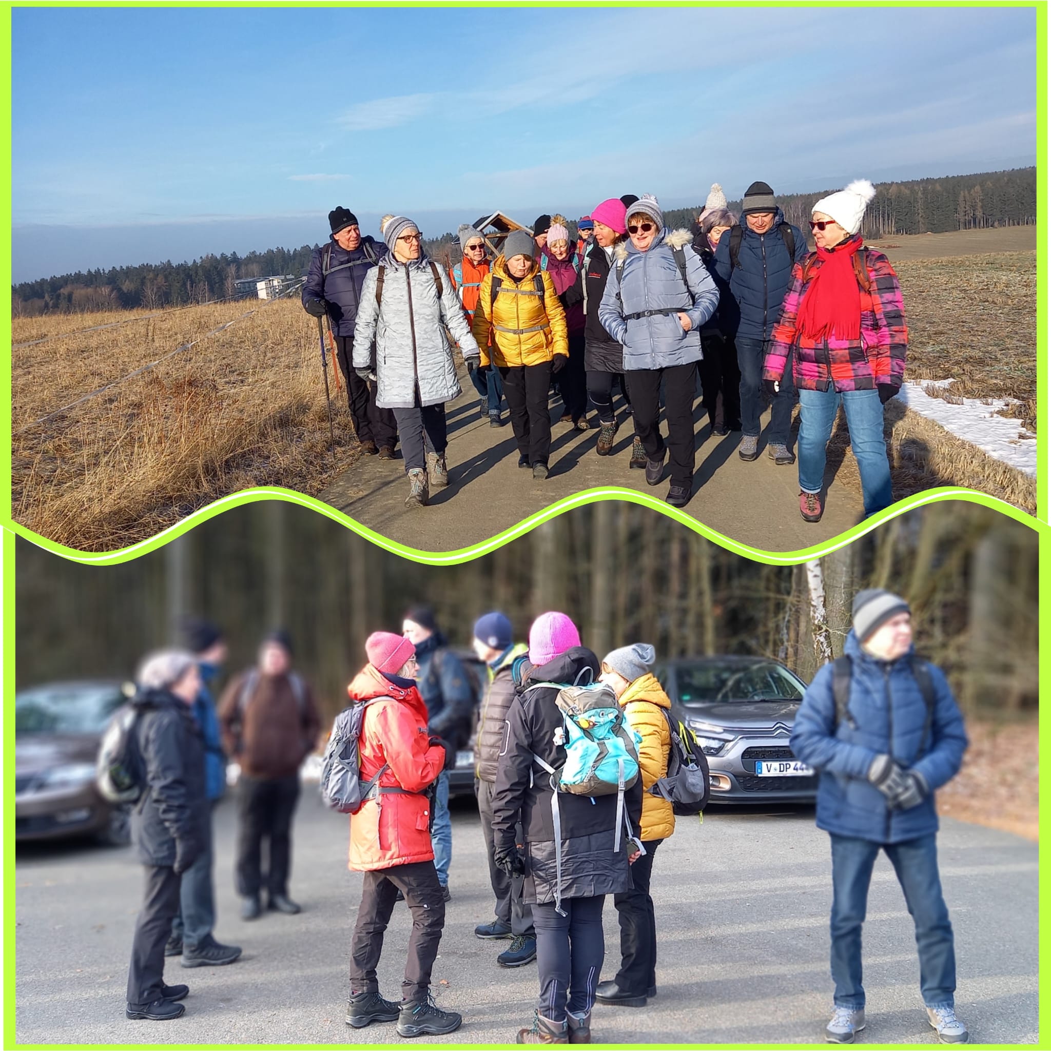Unsere Wanderung begann bei blauen Himmel, Sonnenschein und erträglicher Kälte in Richtung Dorfstadt und führte uns weiter, teils auf dem Radweg zu einem schönen Rastplatz im OT Siebenhitz. Hier legten wir eine kleine Pause ein. Nachdem wir uns gestärkt hatten, ging’s weiter nach Neustadt und mit einem leichten Anstieg zum 638 m hochgelegenen Bezelberg. Bei herrlichem Wetter wurde uns hier ein schöner Rundblick geboten. Unsere Tour führte uns bergab auf einem schönen Waldweg in Richtung Bergen und dann auf der Alten Trieber Str. vorbei an der Schaubäckerei Jahnsmüller und nach 11 km zurück zum Ausgangspunkt. Zum Einkehren ging’s dann nach Schönau zum Gasthof Schneider und nach einem gemütlichen Mittagessen beendeten wir eine sehr schöne Wanderung.