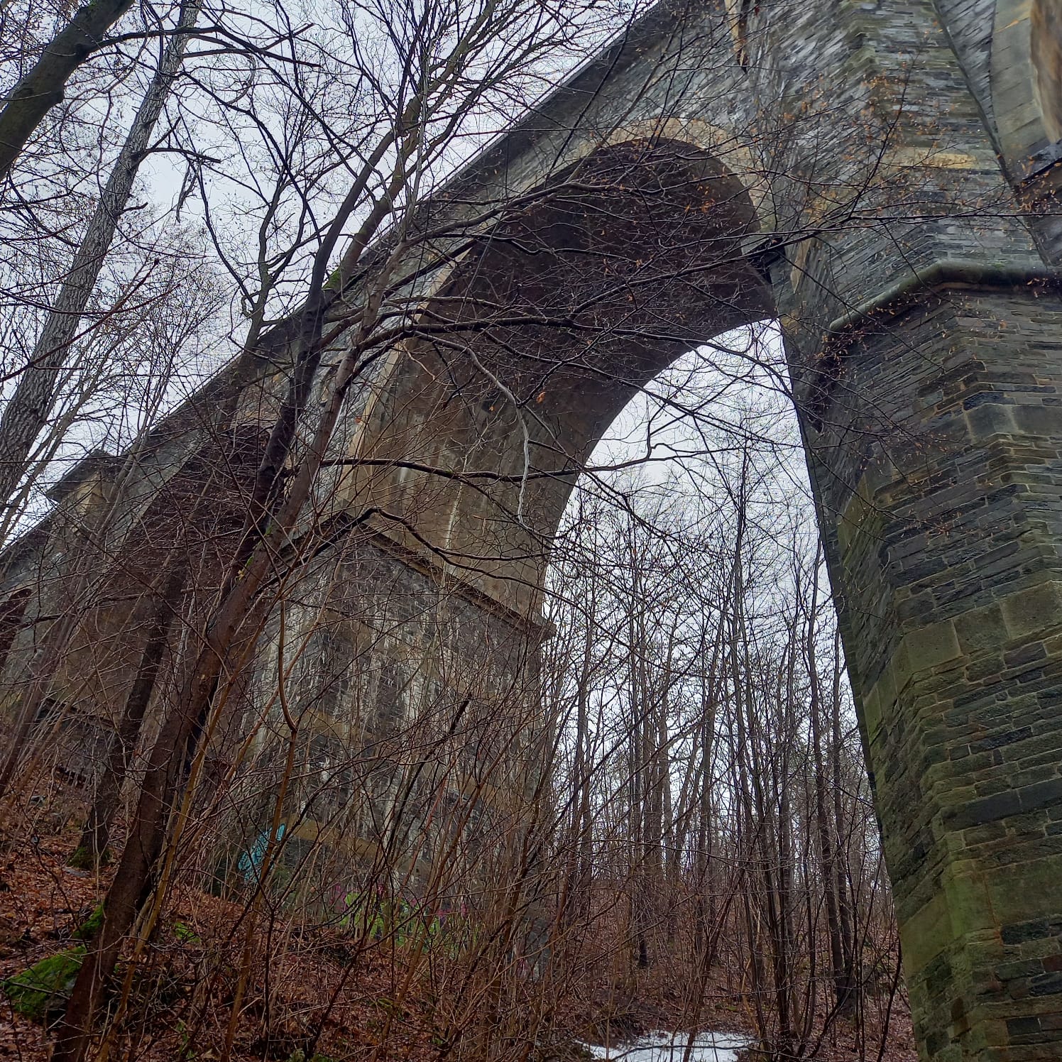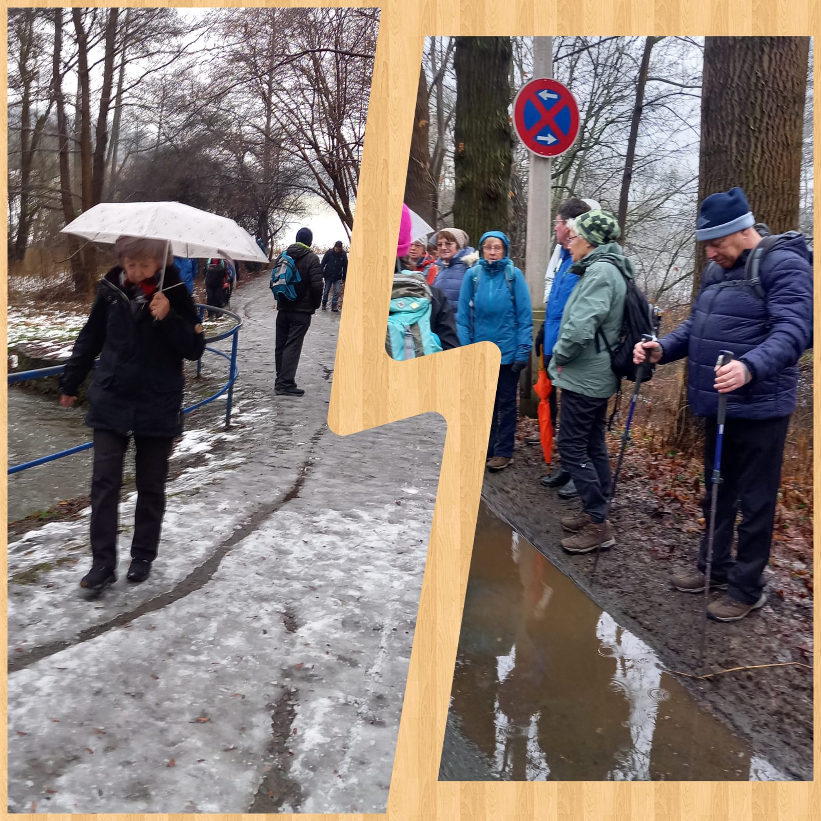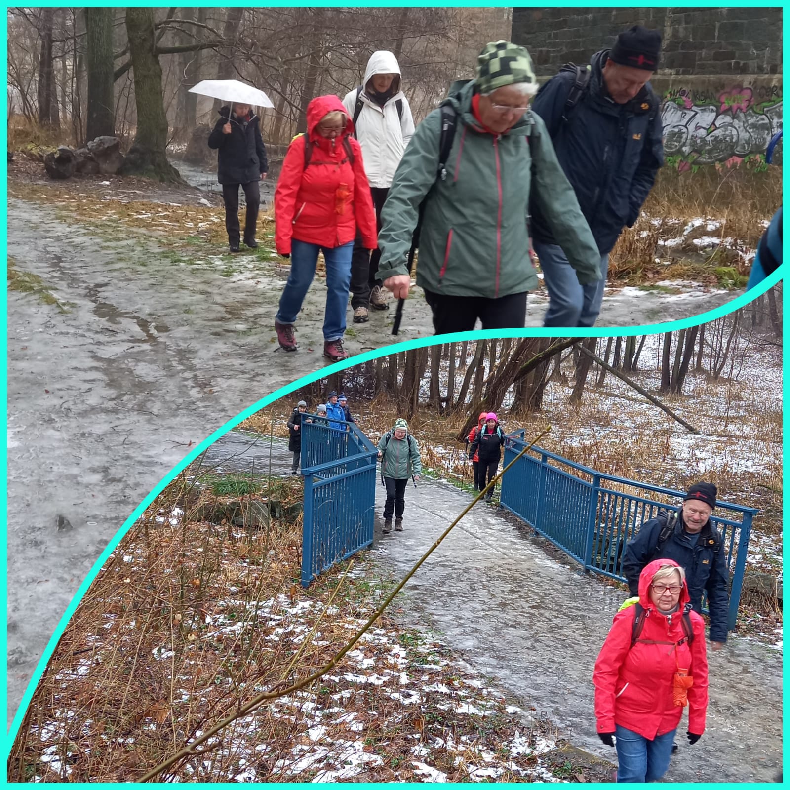 Gleich zu Beginn wird es von der imposanten 201m langen und 34m hohen Syratalbrücke mit 11 Steinbögen überspannt. Dieses Landschaftsschutzgebiet wird von den Plauenern für ausgedehnte Spaziergänge intensiv genutzt, wie am Sonntag vor unserer Wanderung, als es – wie auch die angrenzenden Wiesen und Hänge – unter einer geschlossenen Schneedecke lag. Viele Fußgänger und Kinder mit Schlitten nutzten den herrlichen Wintertag. Doch innerhalb von vier Tagen war durch einen Temperaturanstieg um etwa 15 Grad der Schnee getaut, außer dem festgetretenen auf dem Wanderweg, der sich in eine rutschige Fläche verwandelt hatte und die 17 Wandersperken zwang, auf Laub- und Grasränder auszuweichen, wodurch sich das Wandertempo etwa halbierte. Von der geplanten Wanderung auf üblichen Wegen musste deshalb zugunsten der sonst bei Wanderern verpönten Straße abgeändert werden. Von der Kauschwitzer Straße aus wanderten wir durch das Fuchsloch, ein Waldgebiet, das auch mit etlichen Stationen des Paul-Scholz-Lehrpfades den Wanderer auf Besonderheiten in der Natur aufmerksam macht. Die Eingangstafel des Lehrpfades steht nahe an der B92, von dort gelangten wir nach 8km über schmale Straßen und durch Gartenanlagen zur Gaststätte „Am Parktheater“, wo das Mittagessen bestellt war.