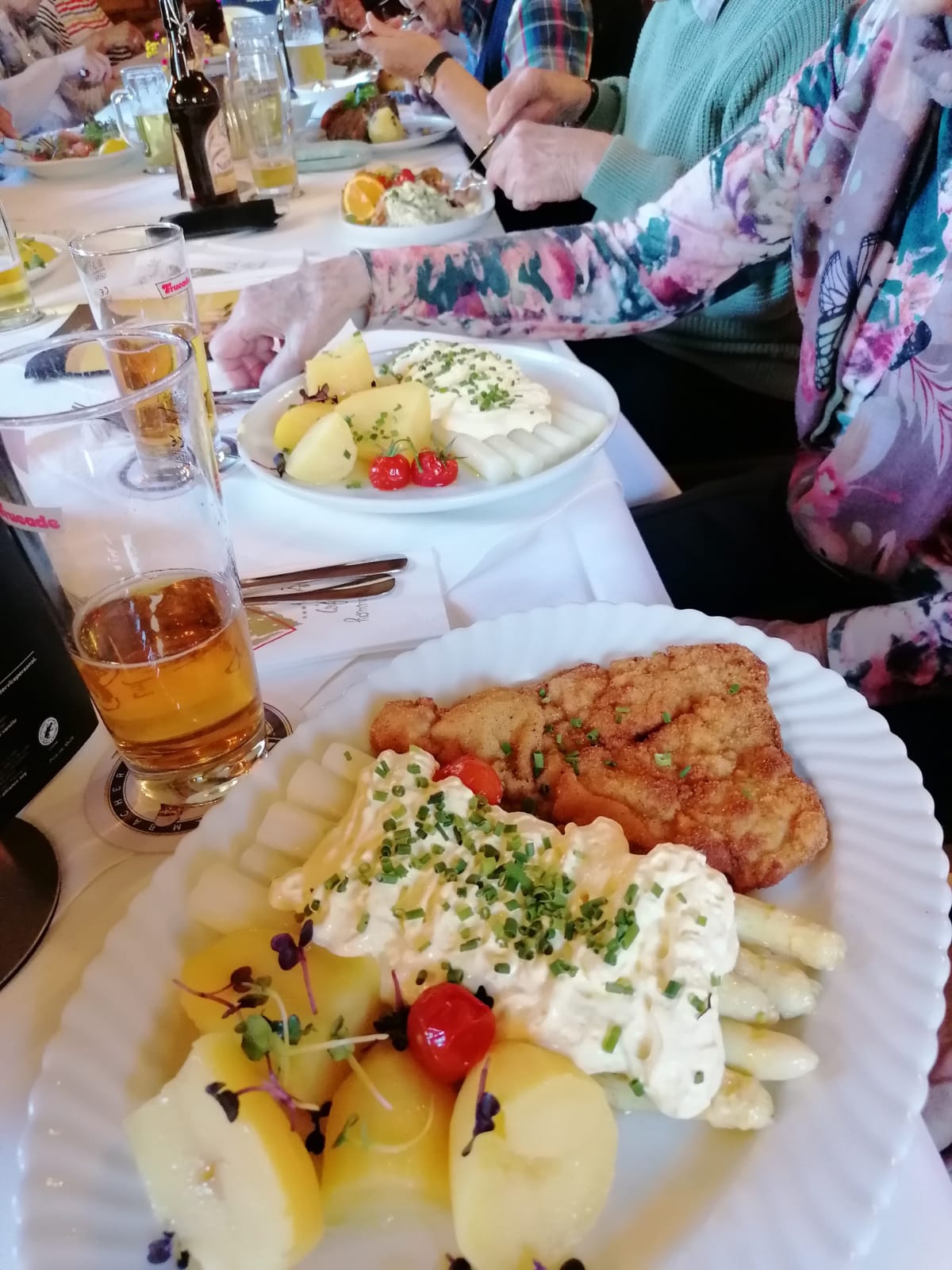 Wir waren seit der Osterhasentour von der Gegend, dort am Allerwertesten der Welt, also von dem traumhaft schönen Flecken Erde rund um, also rimdimmidrim, Papstleiten mein ich, angefixt. Da ging’s dann zengst Dinge no, nei ne Grund vom Wolfsbach, über de Grenz, hin zum Dreiländereck. Dort gab es anlässlich des „Tages des deutschen Bieres“, na was schon, Bier halt und andere weniger gesunde Getränke. Von dort aus sind wir pünktlich im Gasthof Raitschin eingekehrt, haben heimwärts noch „Nentschekugn“ gehamstert und waren anschließend ganz schön kaputt. Wandern halt – macht ferdsch!