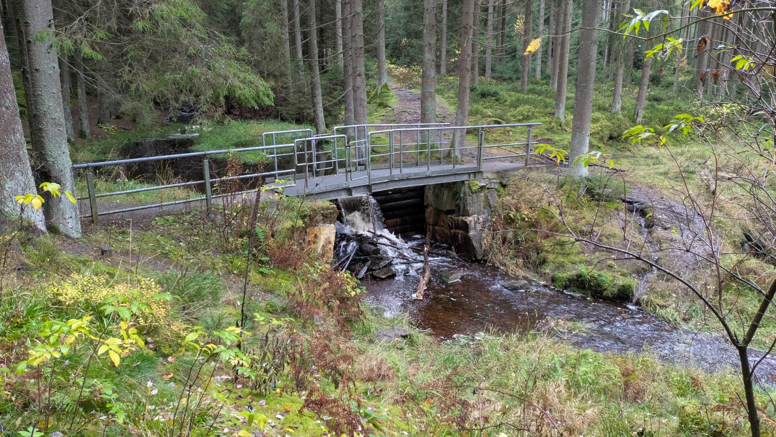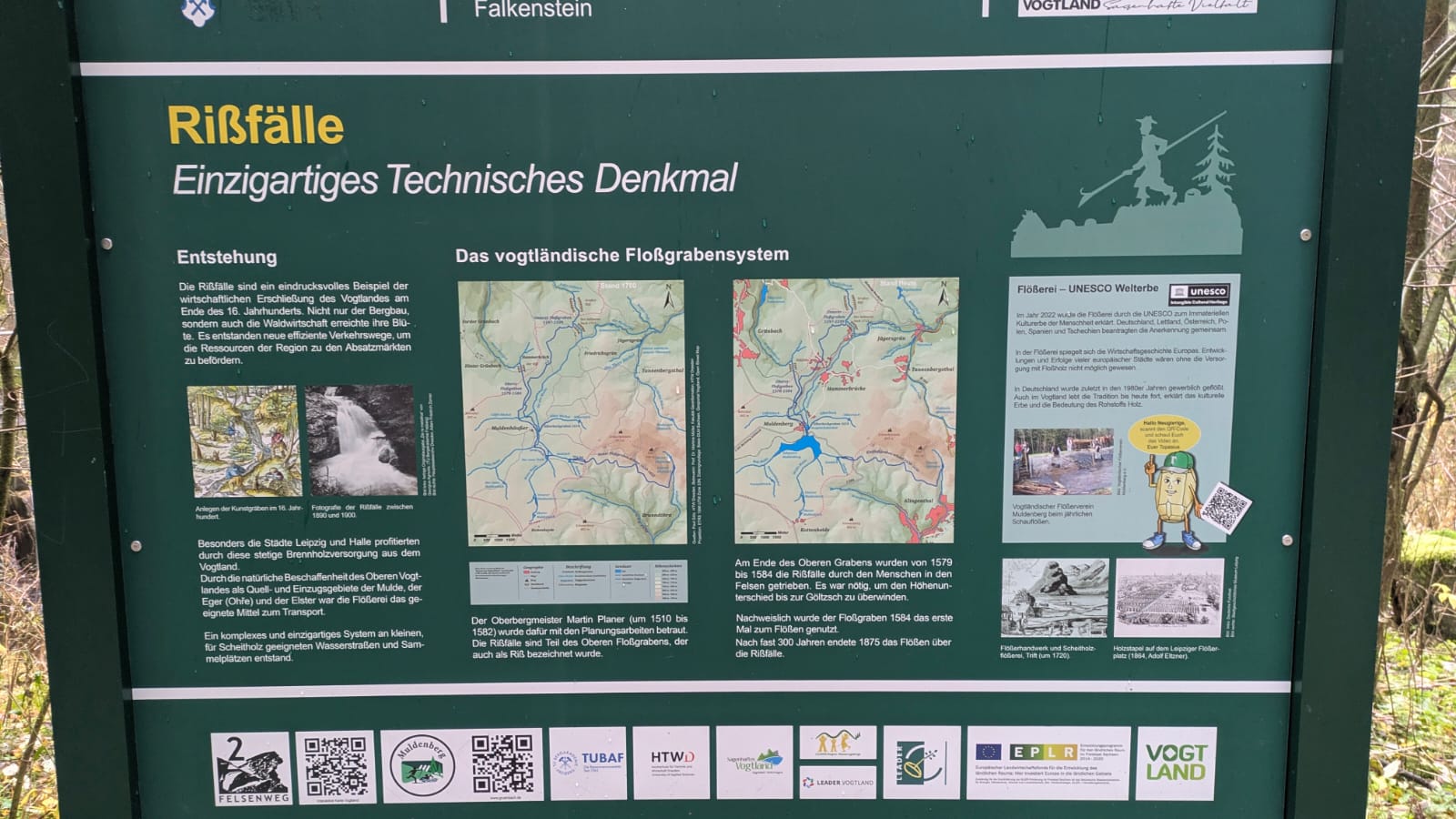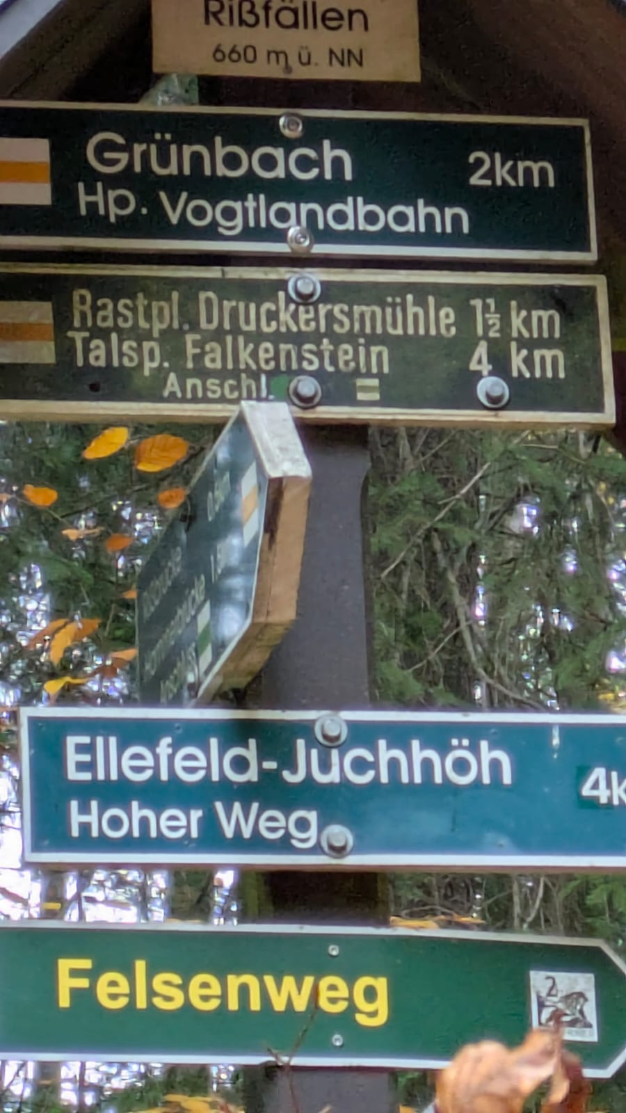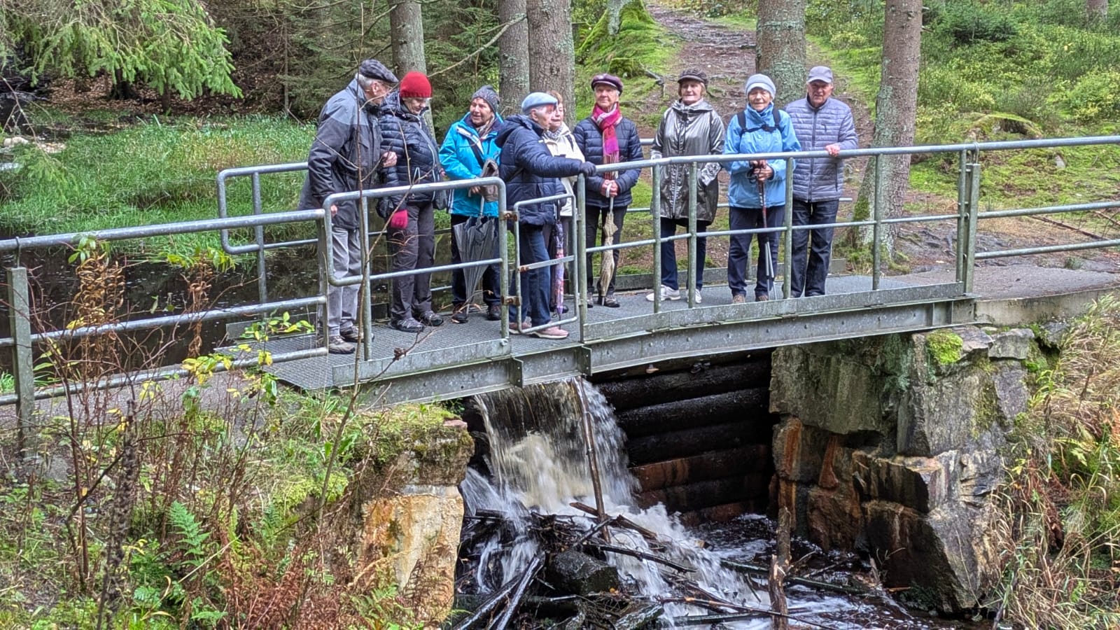 Start war nahe der ehemaligen Druckermühle in Grünbach im Tal der Weißen Göltzsch. Auf dem Waldweg, auch als Felsenweg ausgeschrieben, verlief die Strecke immer an der Weißen Göltzsch, Richtung Rissbrücke entlang. Das muntere Plätschern des Flüsschen war nicht zu überhören, sondern es konnten die kleinen Rissfälle, die sich über kleine Felsspalten stürzten beobachtet werden. Erstklassige Fotomotive. Ein größerer Felsbrocken am Rande des Weges erklärte u.a. warum vom Felsenweg gesprochen wird. Er zieht sich von den Rissfällen bis ins Felsengebiet von Grünbach hin. Interessant wurde es am „Eisernen Steg“, wo sich die Göltzsch etwas staute. Da war auch die säuerliche bzw. moorige Substanz des Wassers deutlich zu erkennen. Bei der Wanderung gab es immer wieder den Blick auf die beiderseitig bewaldeten Steilhänge mit den mächtigen Fichten- und Laubbäumen. Die rötlich schimmernden Fliegenpilze waren auch nicht zu übersehen. Am Ende der Tour waren die Kurzstreckler glücklich und zufrieden, dass sie wieder in einem attraktiven und vor allen romantischen Gebiet unseres Vogtlandes unterwegs sein konnten.