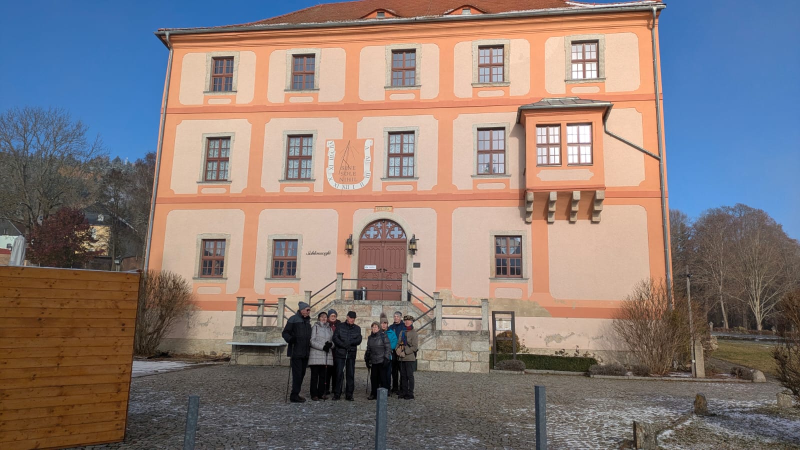 Die Automobile haben uns zuverlässig in das Dorf der Bären kutschiert und dann ging’s los, zu den Geiers Häusern und am Lug ins Land vorbei schnurstracks in das Schloss in Schönberg hinein. Dort erwartete uns das gediegene Ambiente und die entsprechende gastronomische Rundumversorgung. Schee wars!!!